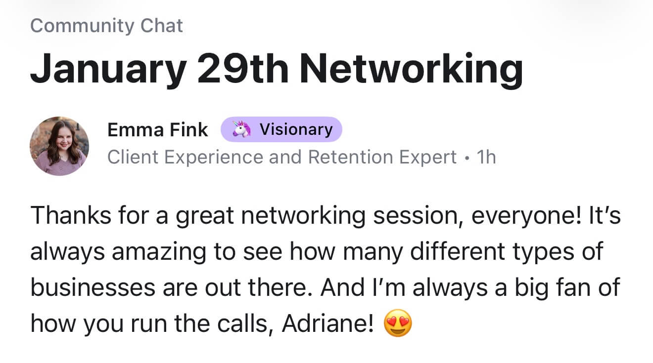 While we don’t have this yet, I plan to work with business owners who would like to partner with me to spearhead local chapters — if local, in-person networking is something you’re interested in, this will be included with your membership at no additional cost!